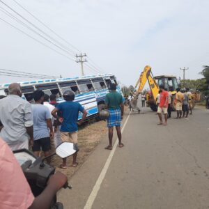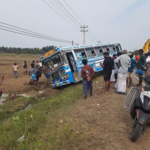 முல்லைத்தீவு விசுவமாடு  பகுதியில் இருந்து புளியம்பொக்கணை நோக்கிப் பயணித்த பேருந்து வயலில் பாய்ந்து விபத்து!