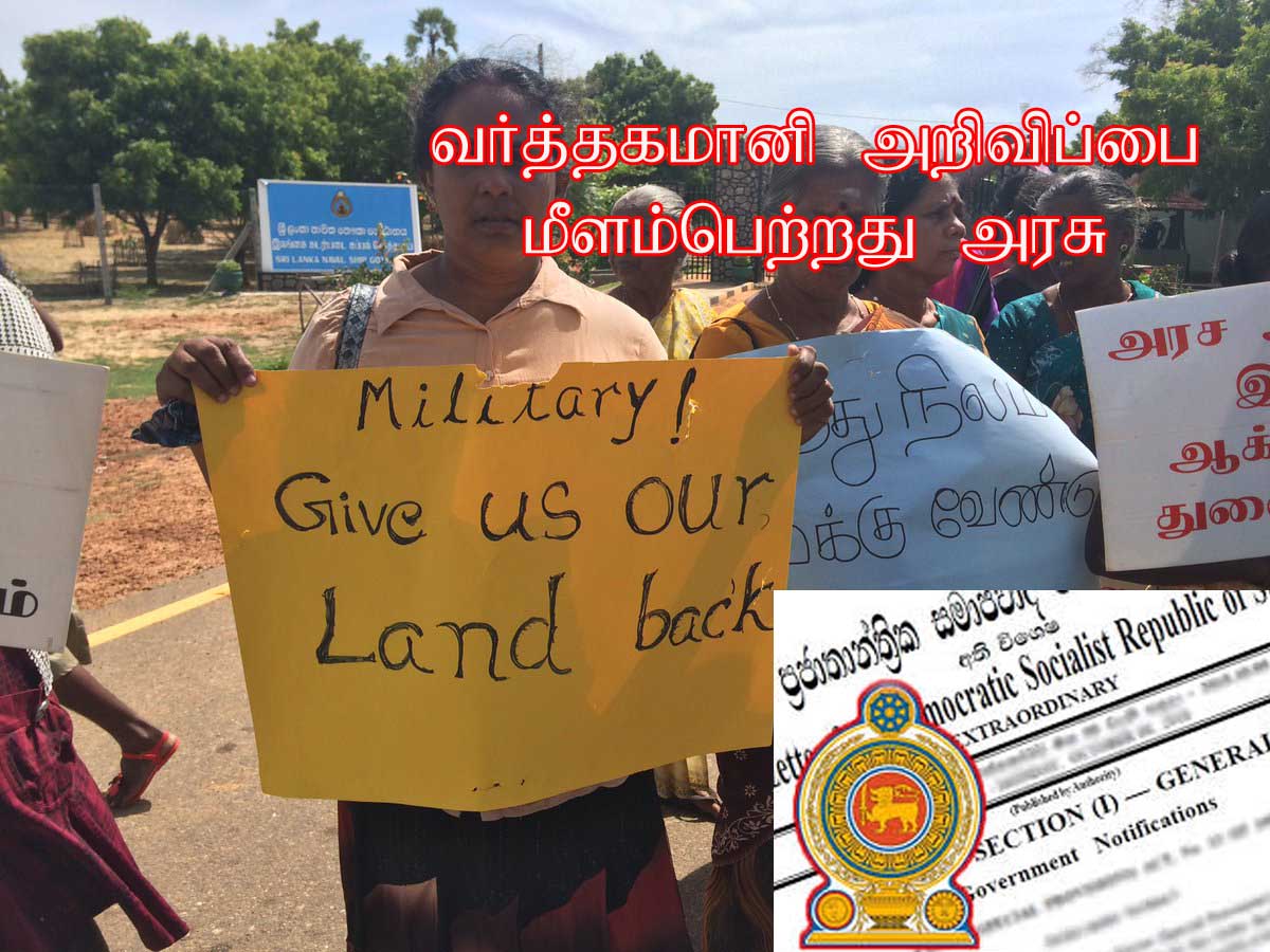 வடக்கு மாகாணத்தில் காணி உரிமை தொடர்பான சர்ச்சையை தூண்டிய 2025 மார்ச் 28 ஆம் தேதி வெளியிடப்பட்ட வர்த்தமானி அறிவிப்பு இலக்கம் 2430 ஐ இலங்கை அரசு இன்று உத்தியோகபூர்வமாக மீளப்பெற்றுள்ளது.